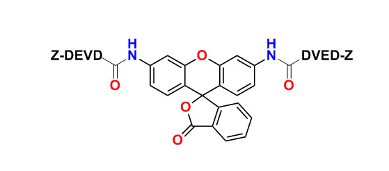 半胱天冬酶在細(xì)胞凋亡和細(xì)胞信號(hào)傳導(dǎo)中起重要作用。 Caspase 3/7(CPP32 / apopain)的激活對(duì)于細(xì)胞凋亡的起始是重要的。 Caspase 3/7也被鑒定為藥物篩選靶標(biāo)。半胱天冬酶抑制劑具有抗癌和其他藥理學(xué)潛力。已經(jīng)證明Caspase 3/7對(duì)肽序列Asp-Glu-Val-Asp(DEVD)具有底物選擇性。 我們的Amplite 熒光Caspase 3/7檢測(cè)試劑盒使用(Z-DEVD)2 R110作為熒光指示劑,用于檢測(cè)caspase 3/7活性。R110衍生的半胱天冬酶底物可能是用于熒光檢測(cè)各種半胱天冬酶活性的最敏感的指示劑。R110肽是無色和無熒光的。通過半胱天冬酶裂解R110肽產(chǎn)生強(qiáng)熒光R110,其可以在510-530nm下熒光測(cè)量,在488nm激發(fā),這是最常見的激發(fā)光源。半胱天冬酶誘導(dǎo)的R110水解的熒光增加與半胱天冬酶的活性成比例。